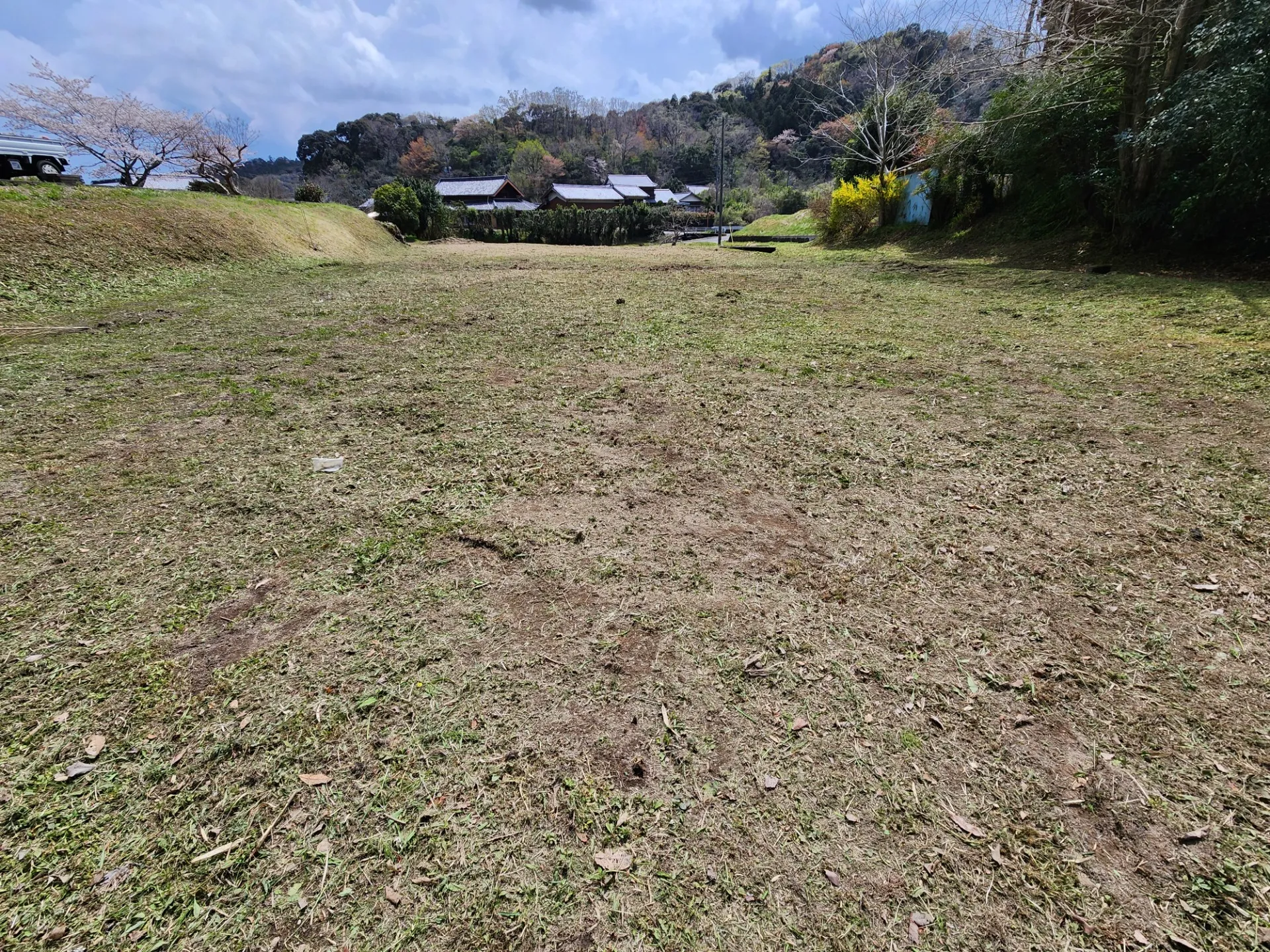 丁寧に草を刈った後は、ユンボを入れて整地をします。