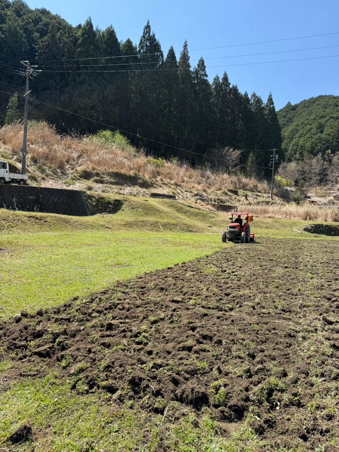ご高齢で耕作をあきらめられた農家様からお借りした土地を、新たな農地として耕しました✨