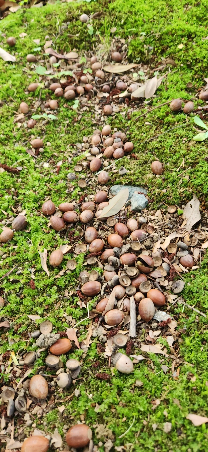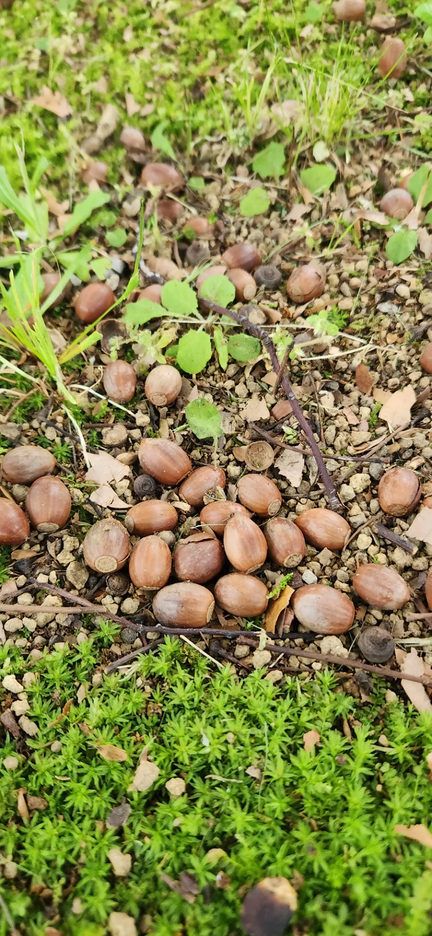 休憩時間に地面に目をやるとどんぐりが沢山落ちてました。