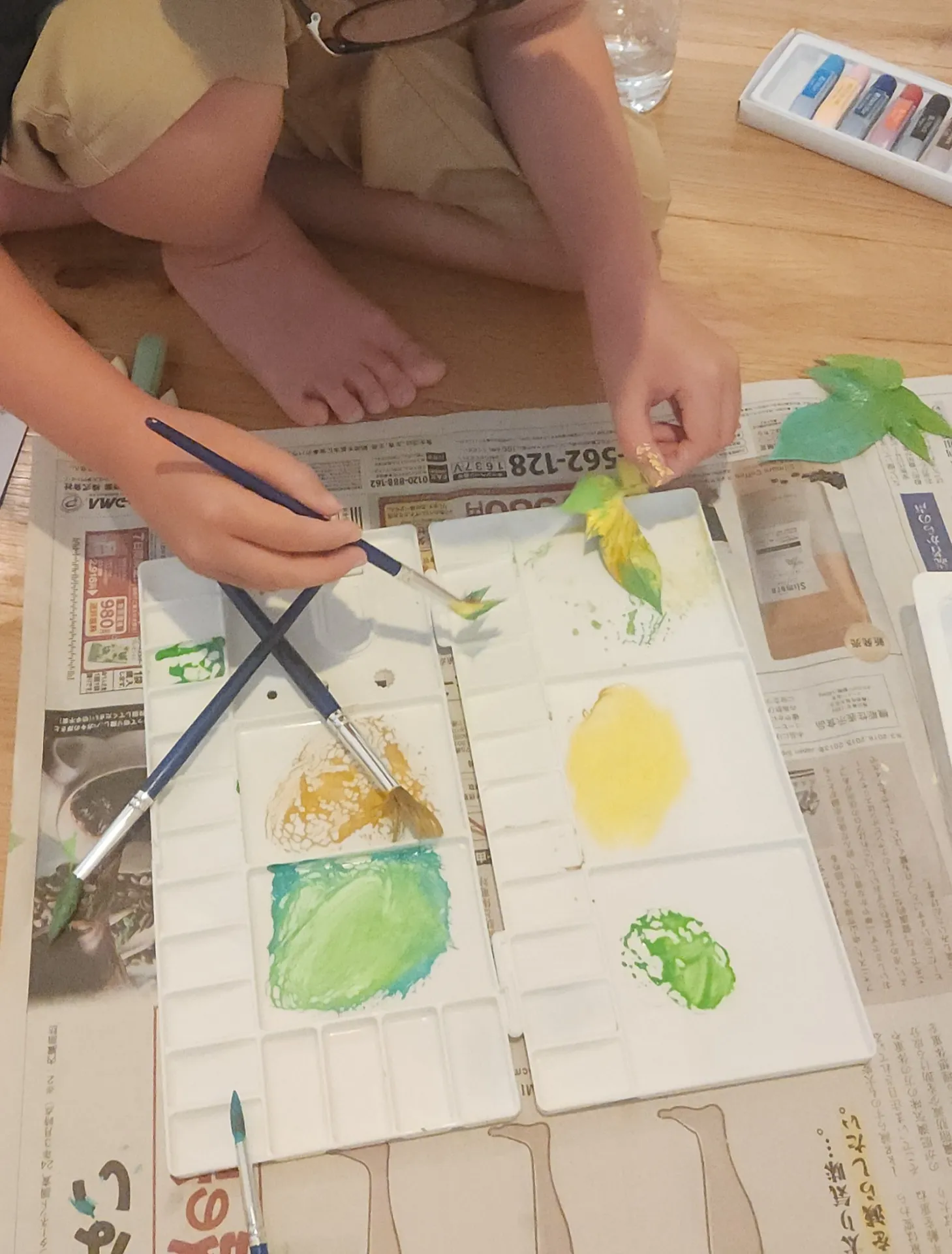 葉っぱは絵の具をつけて、スタンプに。