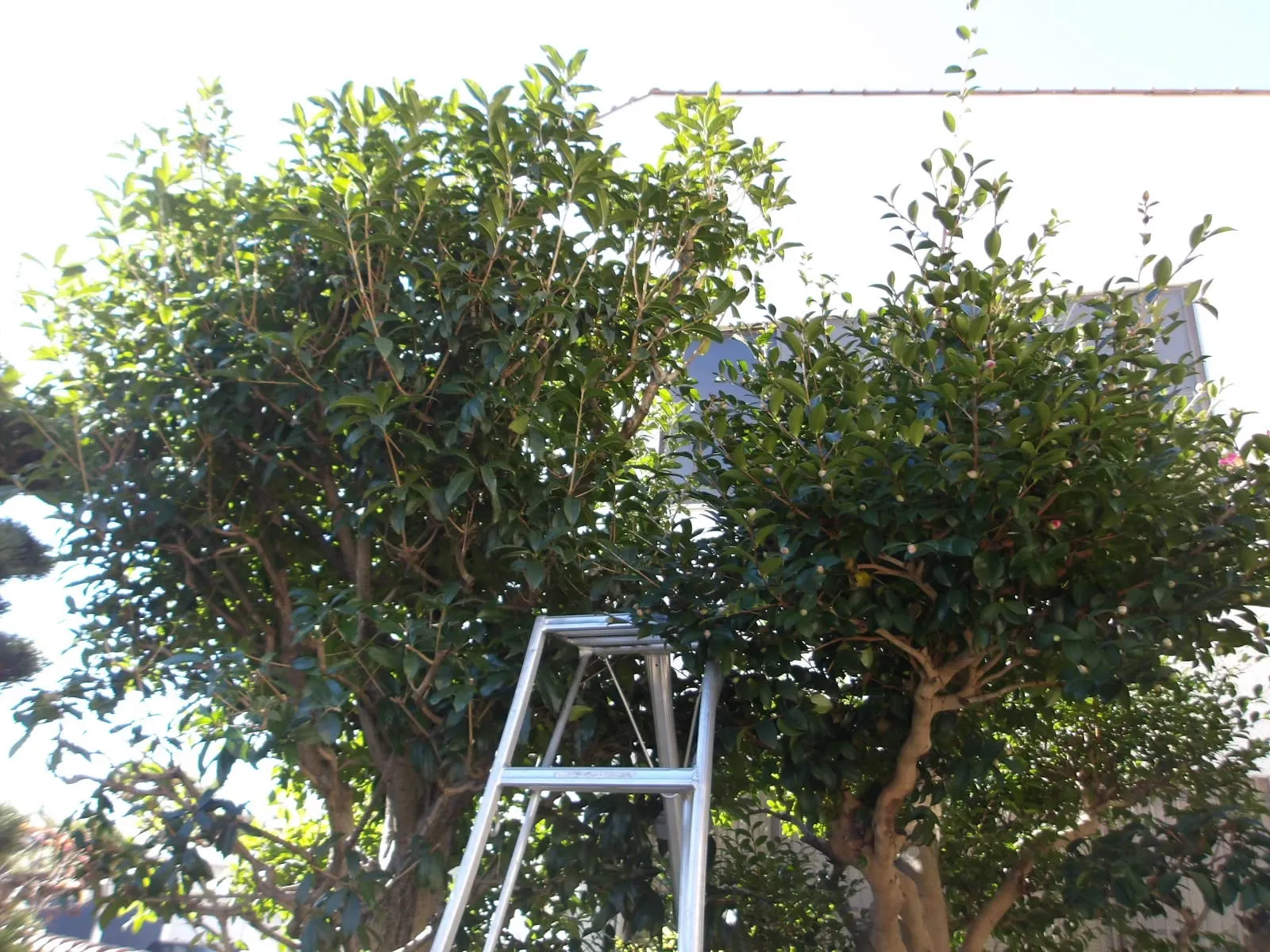 屋根よりも大きくなり過ぎたキンモクセイとサザンカを